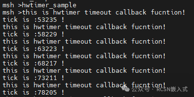 运行自带的shell命令hwtimer_sample,该命令会运行5s的定时,查看readme文档